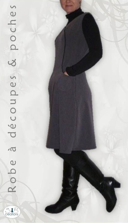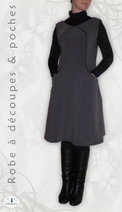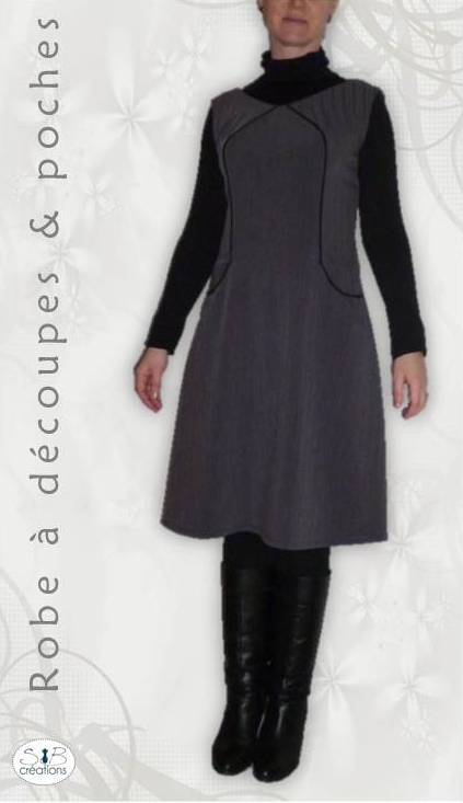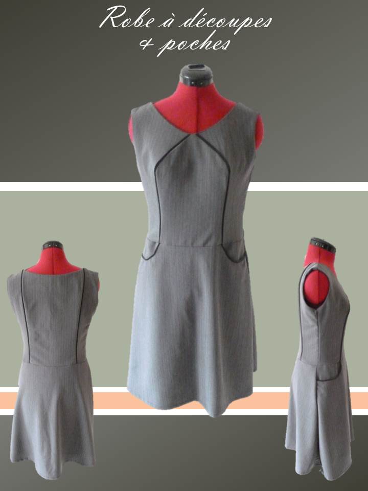 Voici ma version de la robe E du livre « Le charme du style classique ». Ce livre est décidément une mine d’or ! J’ai tenu à souligner les découpes de cette robe avec un liseret noir.