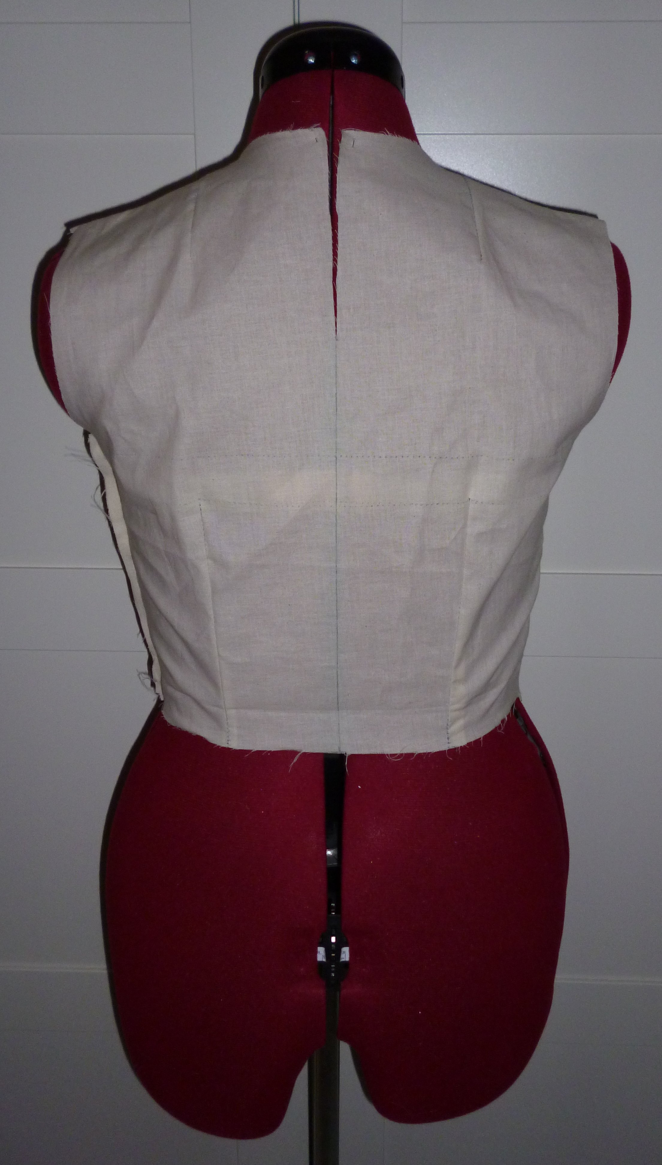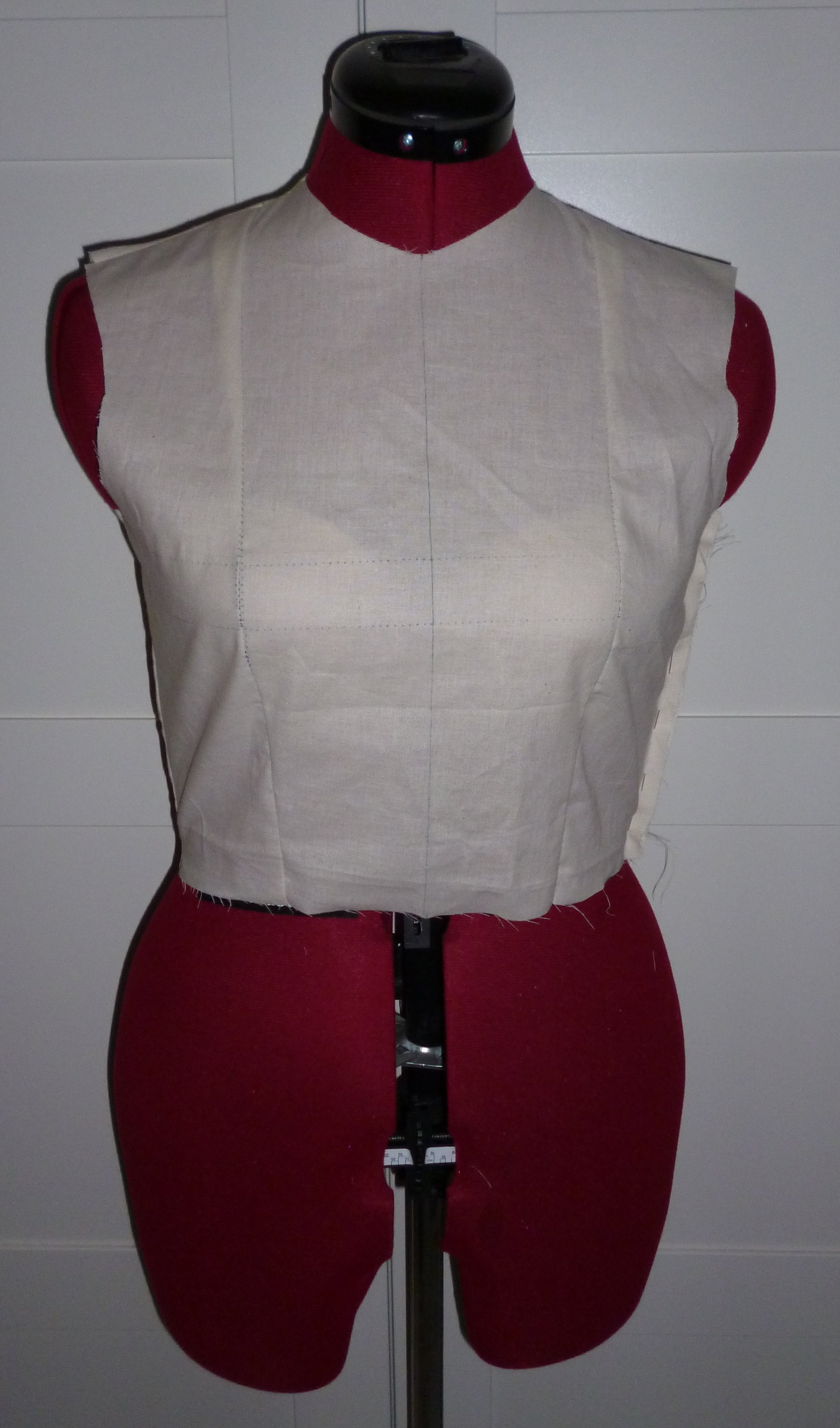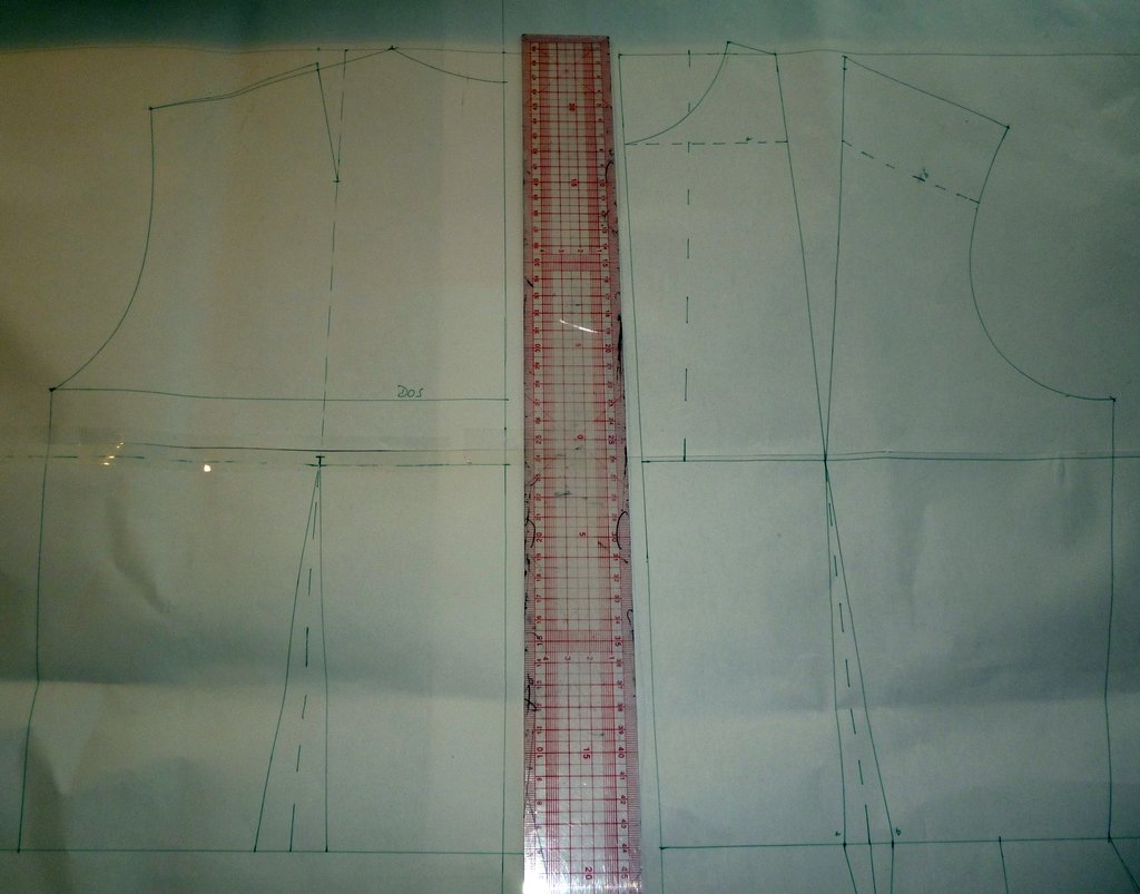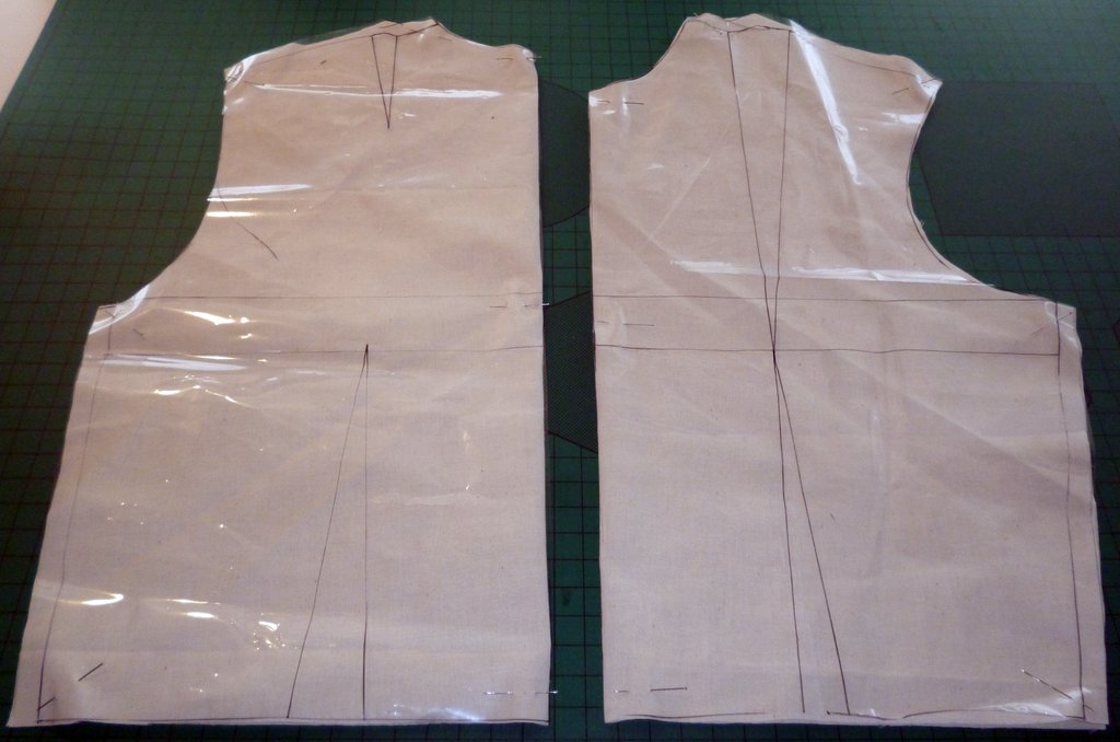 Je relève le devant et le dos, ajoute les valeurs de couture (côtés & épaules) puis je coupe ce patron dans une toile.