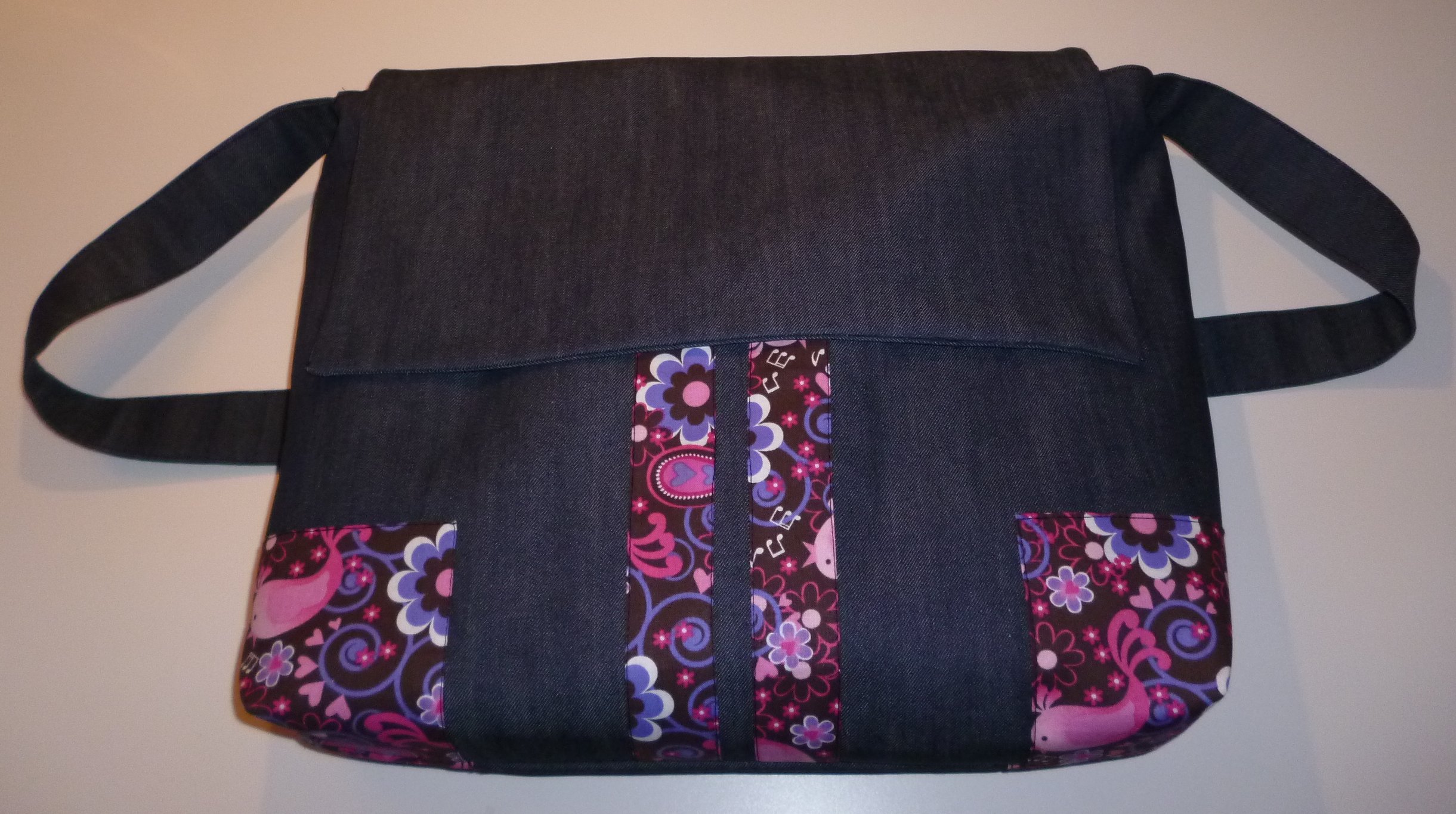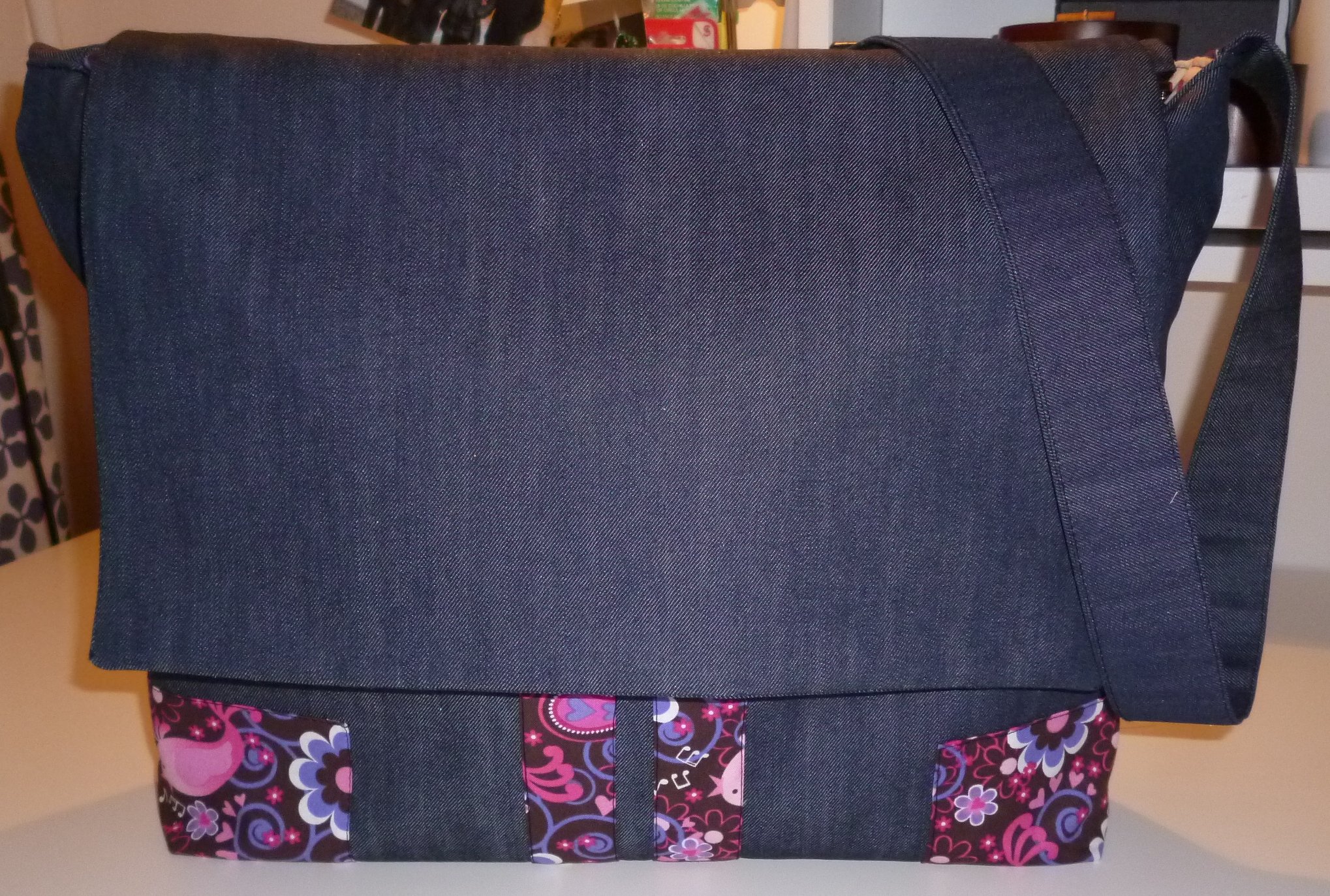 Parmi les quatre patrons proposés, mon choix s’est arrêté sur la besace « Alex : patron de couture pour un sac besace d’été souple, avec coins-renforts et bandes contrastantes devant, poche intérieure zippée dans la doublure. » J’ai décidé de faire les deux versions en une, à savoir un sac fermé par une fermeture à glissière et par un rabat. Le patron est téléchargeable en version PDF ainsi que les explications qui sont très bien expliquées. Tout y est limpide. Quelques trucs et astuces accompagnent également les explications. C’est toujours intéressant de voir la méthode de montage utilisée, les différentes techniques de couture, on apprend toujours quelque chose : je suis vraiment ravie de ce patron et je tiens à encourager vivement cette toute nouvelle créatrice dans cette aventure.