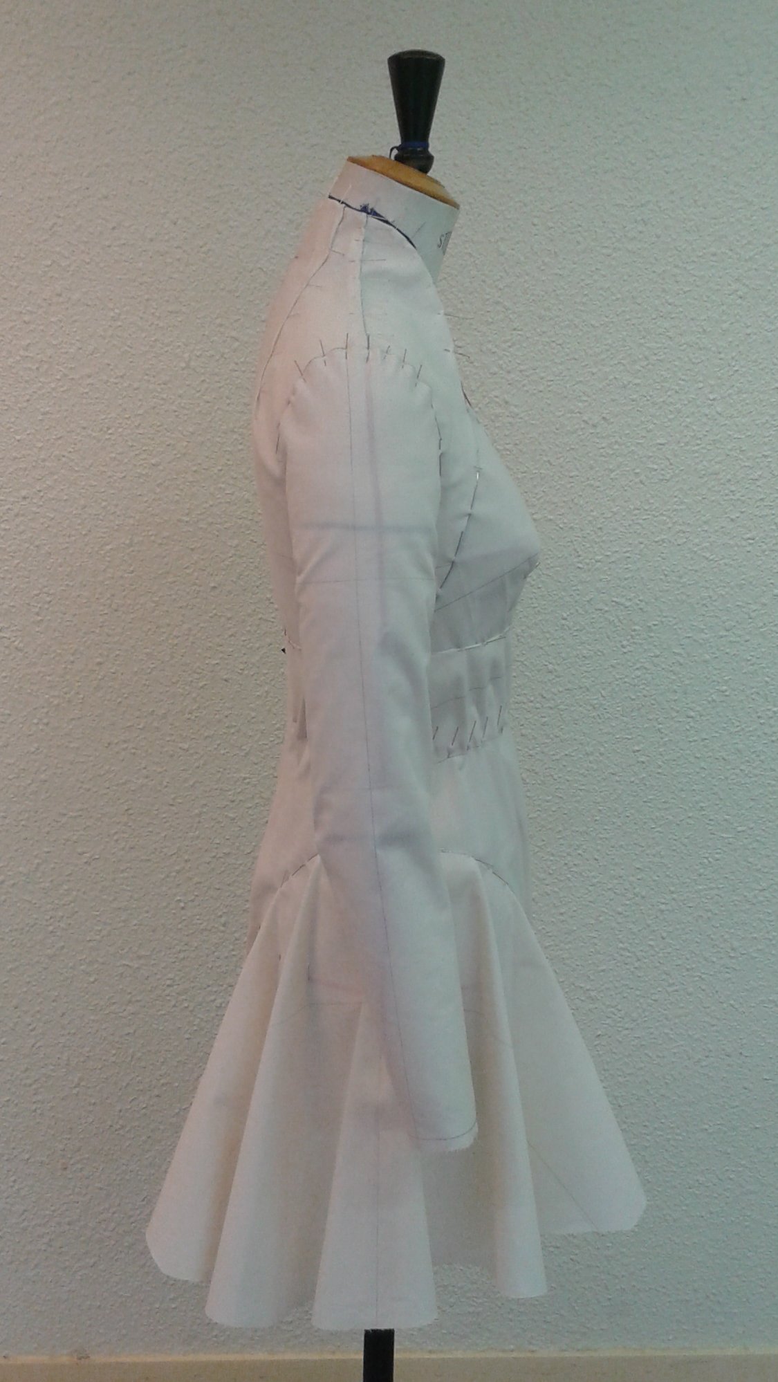 Ci-dessous la robe, une fois les épingles à la taille et au bassin retirées :