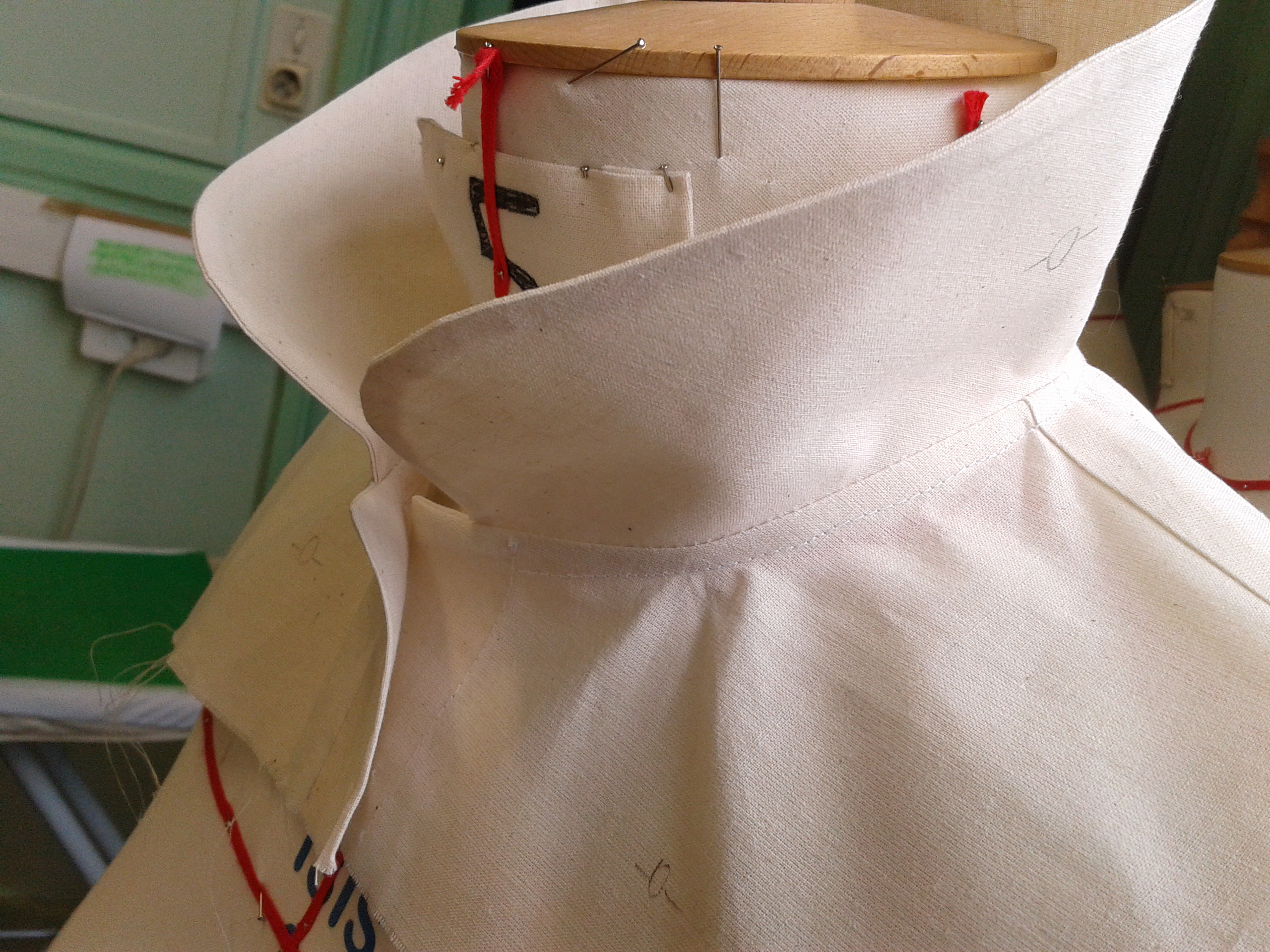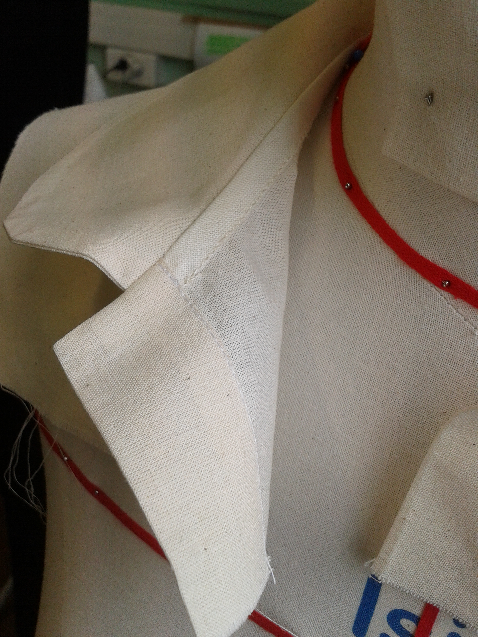 le col claudine (il est roulé, c’est à dire que le col n’est pas plaqué sur l’encolure) et un col chemisier classique avec pied de col rapporté et patte de boutonnage cachée. Précision et minutie sont les maîtres mots pour coudre correctement ces deux cols. Et ce n’est pas si évident que ça…