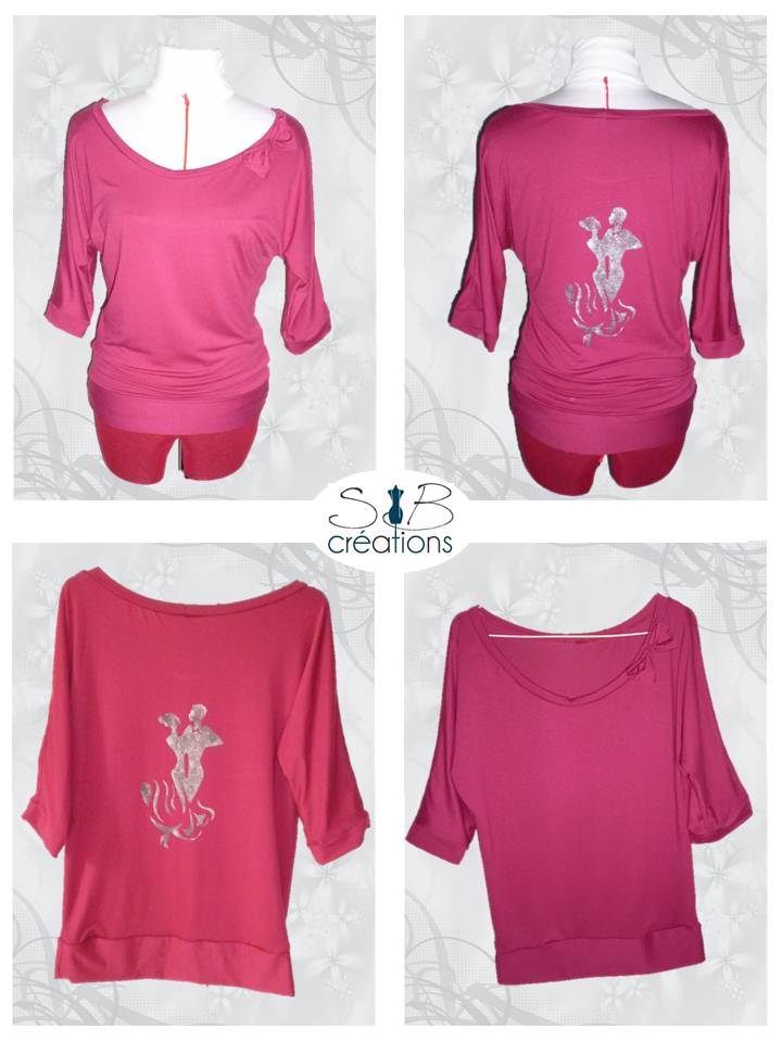 Pour continuer sur ma lancée de la peinture textile grâce au freezer paper, voici un t-shirt dont le patron et le tuto sont gracieusement offerts par le blog MCPB : « Le t-shirt loose ». J’ai tout de même réduit l’ampleur au niveau des hanches de 10 cm (la patron est de taille M) puis l’ai réalisé dans un jersey de coton couleur fushia, toujours chez Stop tissu.