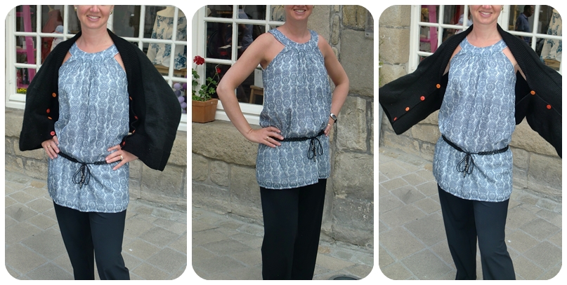 Tunique du livre « tuniques pour Petits & grands » accompagnée de l’étole transformable du livre de la Droguerie :