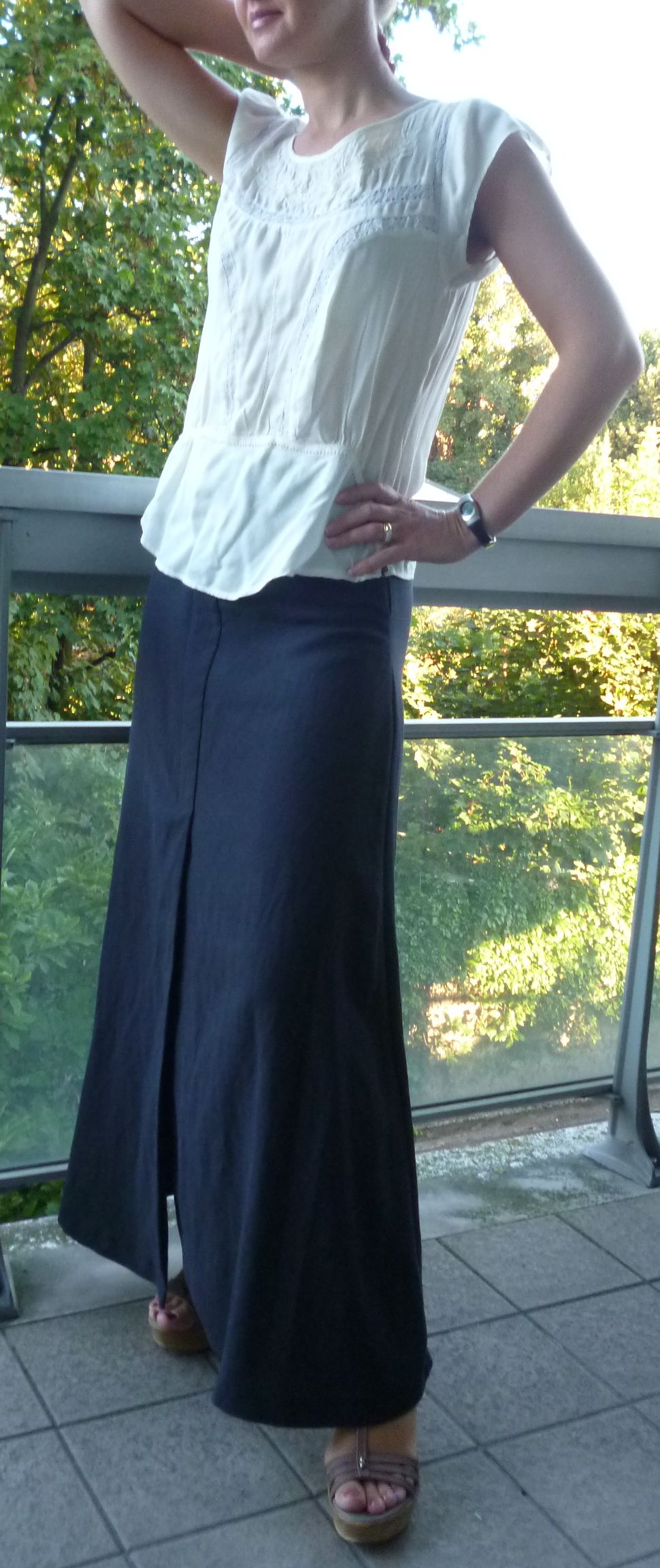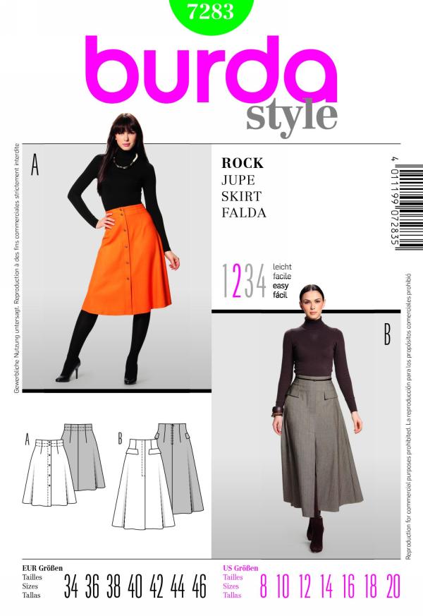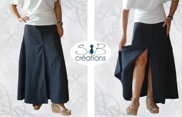 Encore une pochette Burda, décidement je ne m’en lasse pas ! Voici la réalisation d’une jupe taille haute, longue & évasée. J’ai donc choisi le modèle B qui est fendu sur le milieu devant.