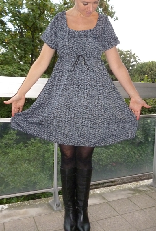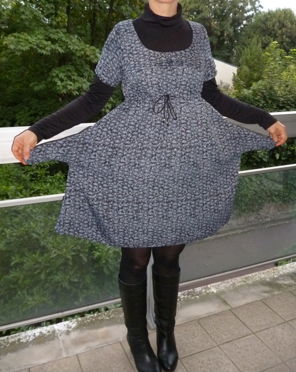 J’ai préféré faire un essai dans un tissu très fluide acheté trois sous sur un marché dont les motifs ne me plaisaient qu’à moitié. Il s’agit donc là encore d’un prototype…