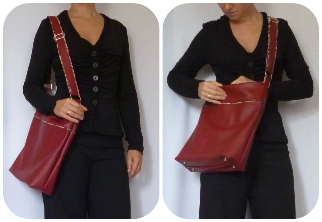 Mais j’ai vaincu ! Le voici donc mon tout dernier sac avec sa bandoulière réglable qui permet donc de le porter au choix soit à l’épaule, soit en bandoulière :