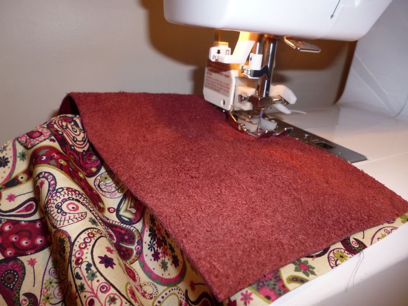 Pour faliciter la couture de mon cuir (qui était bien épais), j’ai utilisé un pied double entraînement. A certains moments, lorsqu’il y avait plusieurs épaisseurs, j’ai tout de même été obligée de coudre manuellement en tournant uniquement le volant.