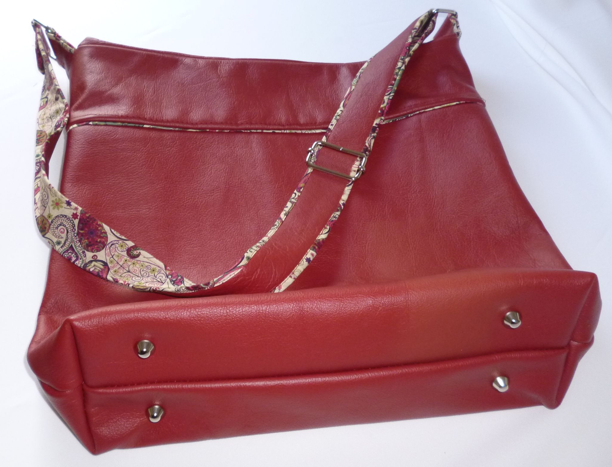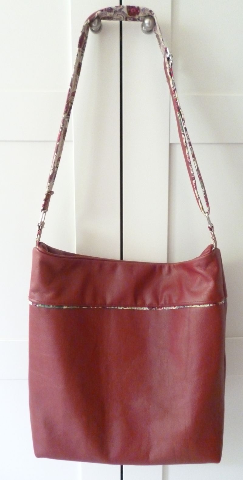 Voici donc ma version du sac Flo réalisé dans une belle chute de cuir rouge/bordeaux et dans un liberty que j’affectionne tout particulièrement : le Liberty Mark.