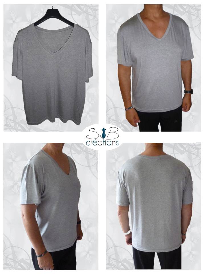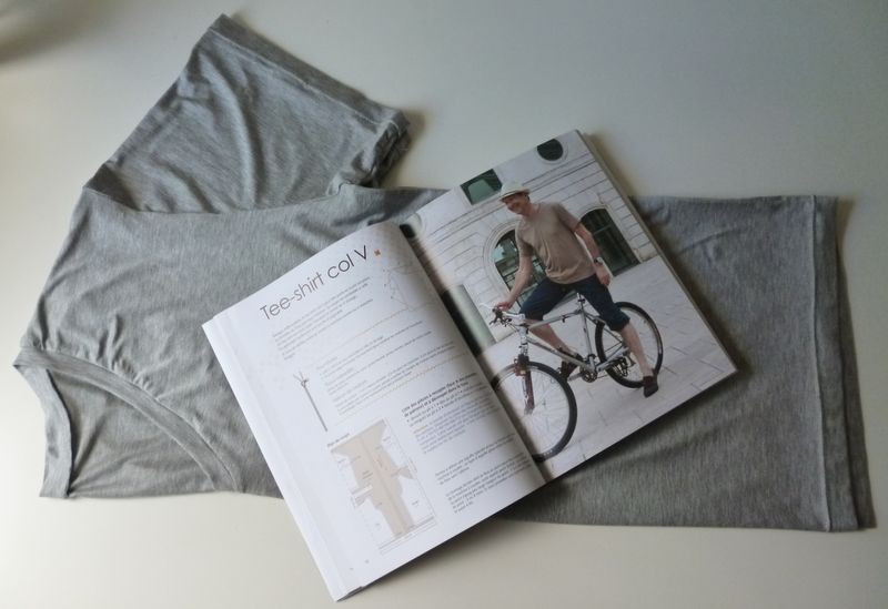 Voici mon essai du t-shirt col V du livre « Casual wear pour homme » dans un jersey de coton gris, tout doux et de très bonne qualité acheté chez Stop tissu à 3 euros le mètre.