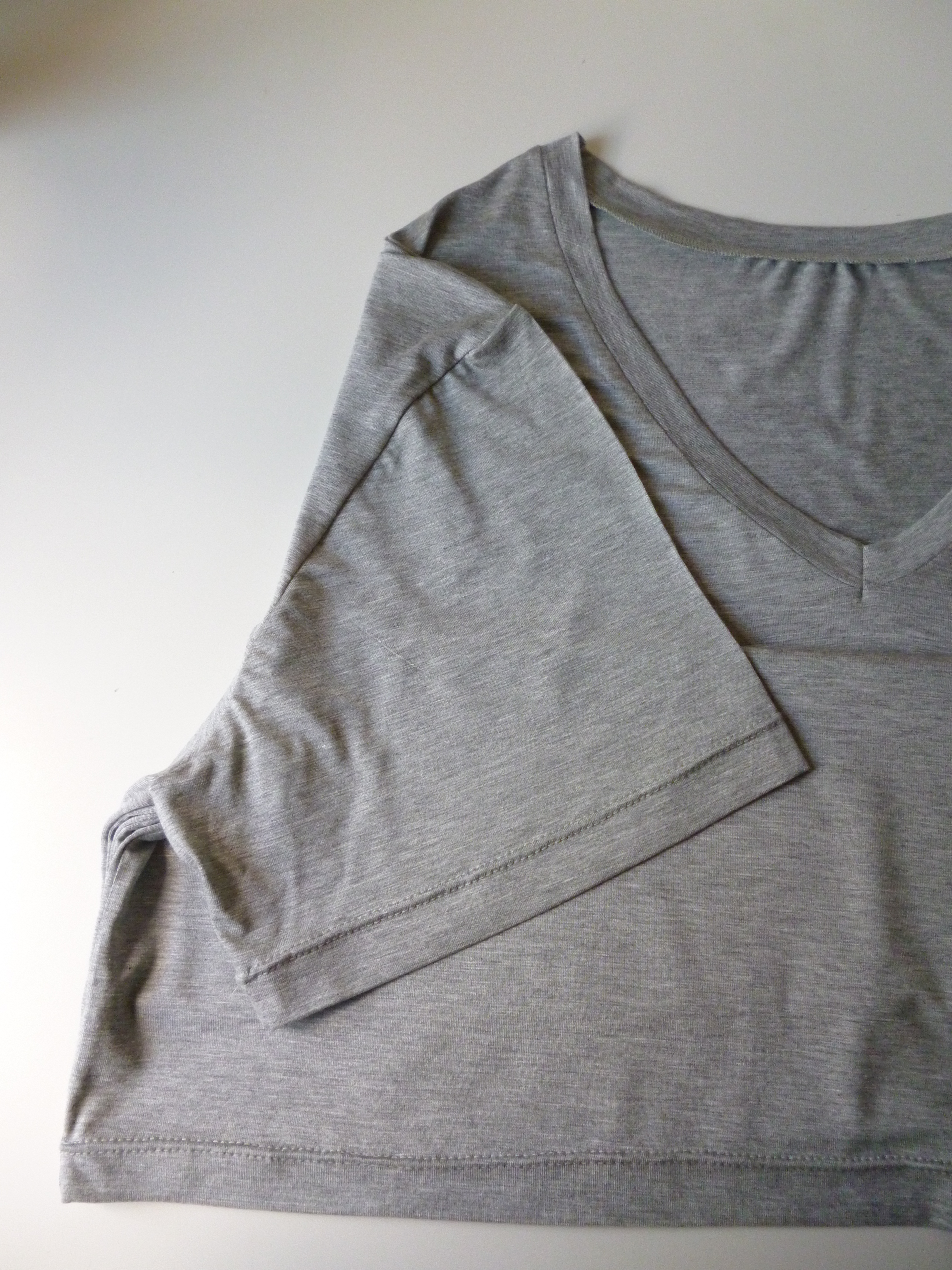Les explications du montage et des finitions sont très claires. L’assemblage de la bande d’encolure est un peu différente de ma façon de faire mais ça marche tout aussi bien ! Les ourlets des manches et du bas du T-shirt sont réalisés grâce à l’aiguille double, comme d’habitude.