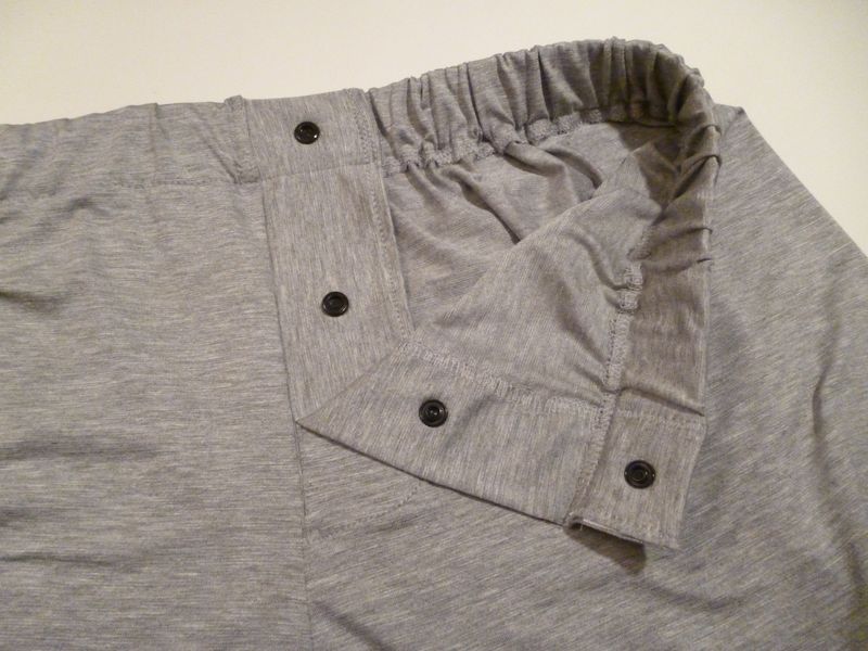 Puisqu’il me restait du tissu, j’en ai profité pour refaire une autre version, fermée cette fois avec des pressions Kam.