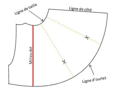 Fendre ces nouvelles lignes en laissant un point de 2 mm sur la courbe de la taille (ne pas couper entièrement).