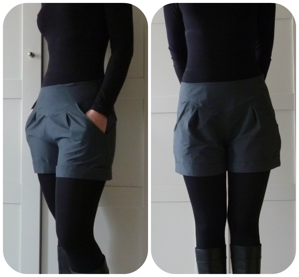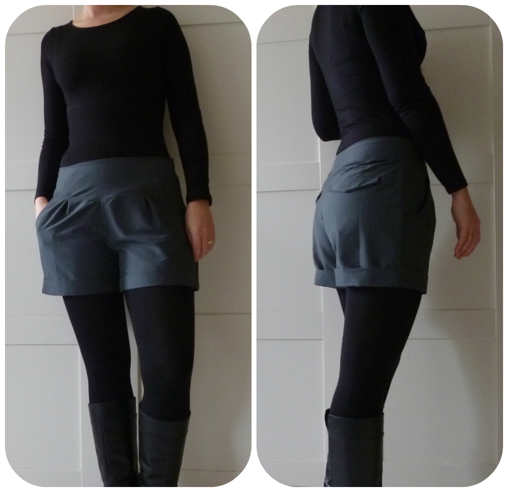Voici le prototype du short chataîgne, le dernier patron de Deer and Doe : « Short à pinces avec deux variantes : taille normale et revers ou taille haute et festons. Fermeture par un zip invisible sur le côté. »