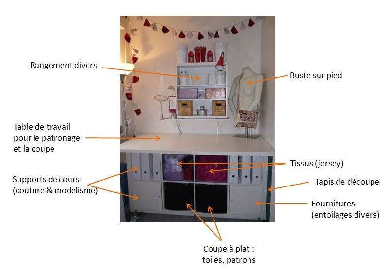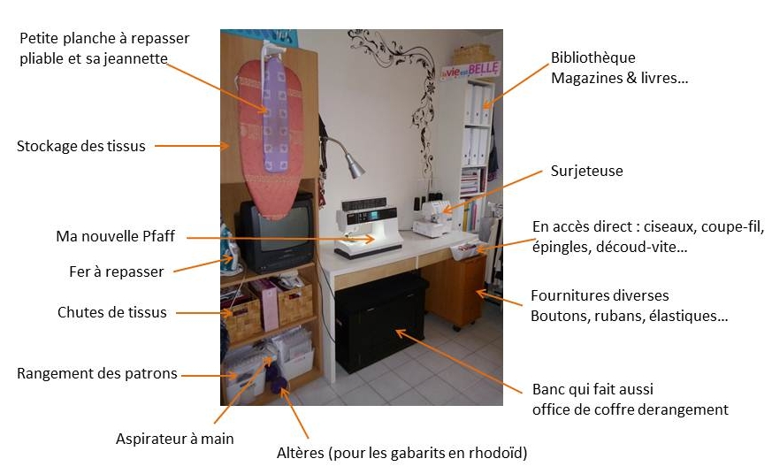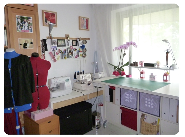 Ah!! Un coin couture ….. J’y pense souvent et j’admire ceux des autres. Avec 4 jeunes enfants mon espace est déjà saturé … En tout cas, bravo pour cette belle organisation qui va contribuer au plaisir de la couture en XXL!! Sans oublier un grand merci au petit mari qui a fait une si belle surprise!!