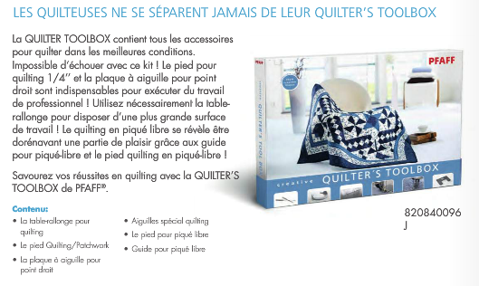 Je ne connais pas du tout l’art de quilter, mais maintenant que je suis équipée, je vais m’y intéresser de plus près.