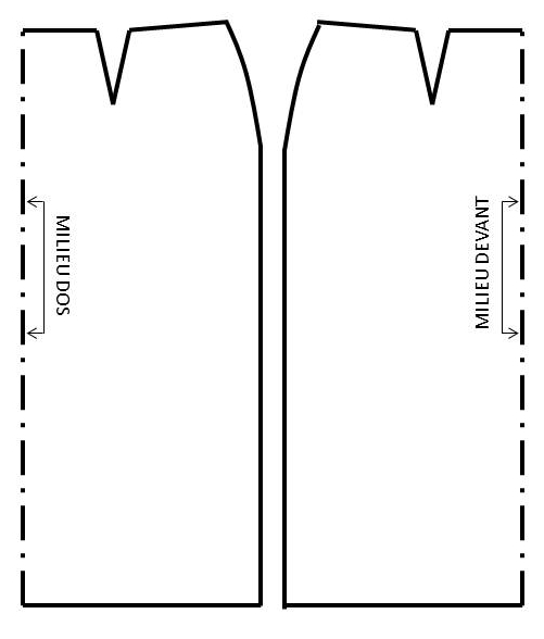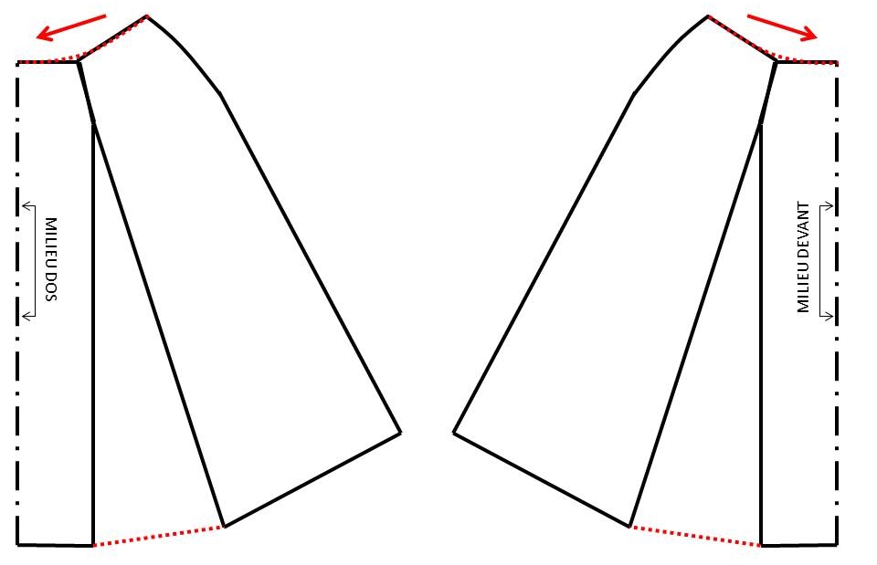 2/ Evaser la jupe. Pour cela : prolonger l’axe/l’aplomb des pinces devant et dos jusqu’en bas en restant parallèle au milieu. Fendre ces axes jusqu’à l’extrémité des pinces.