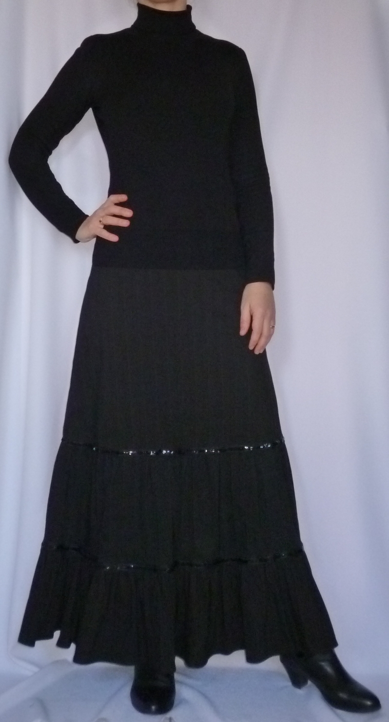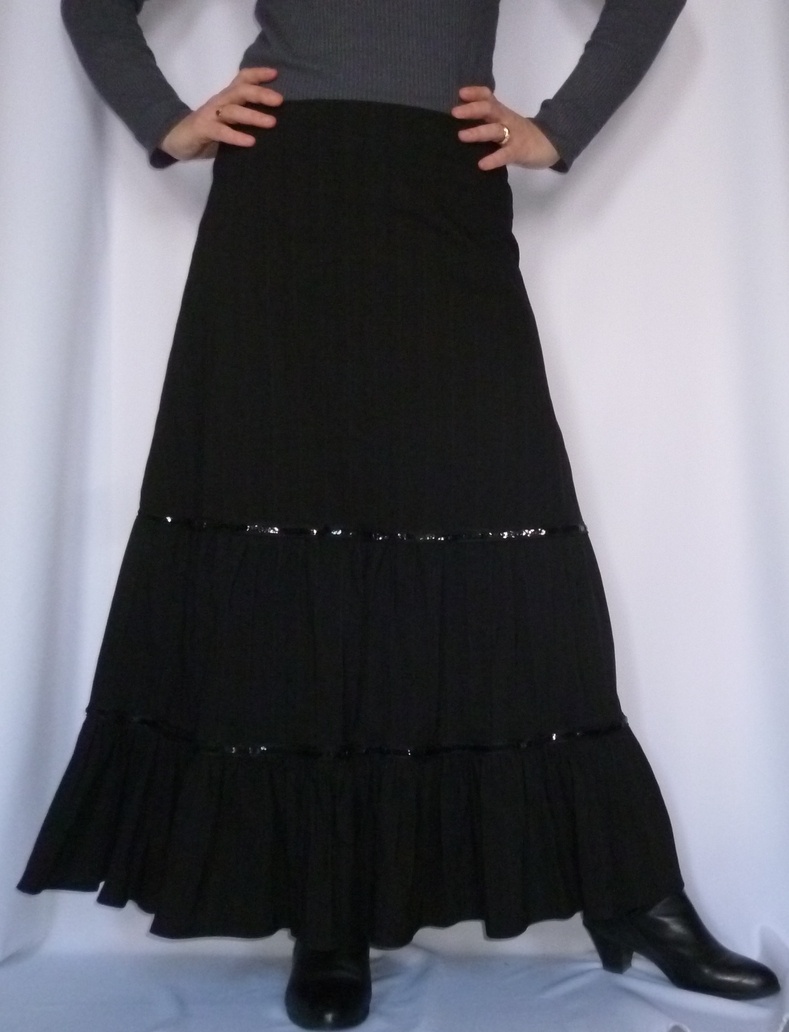 … pour en faire une version jupe longue évasée à volants froncés :