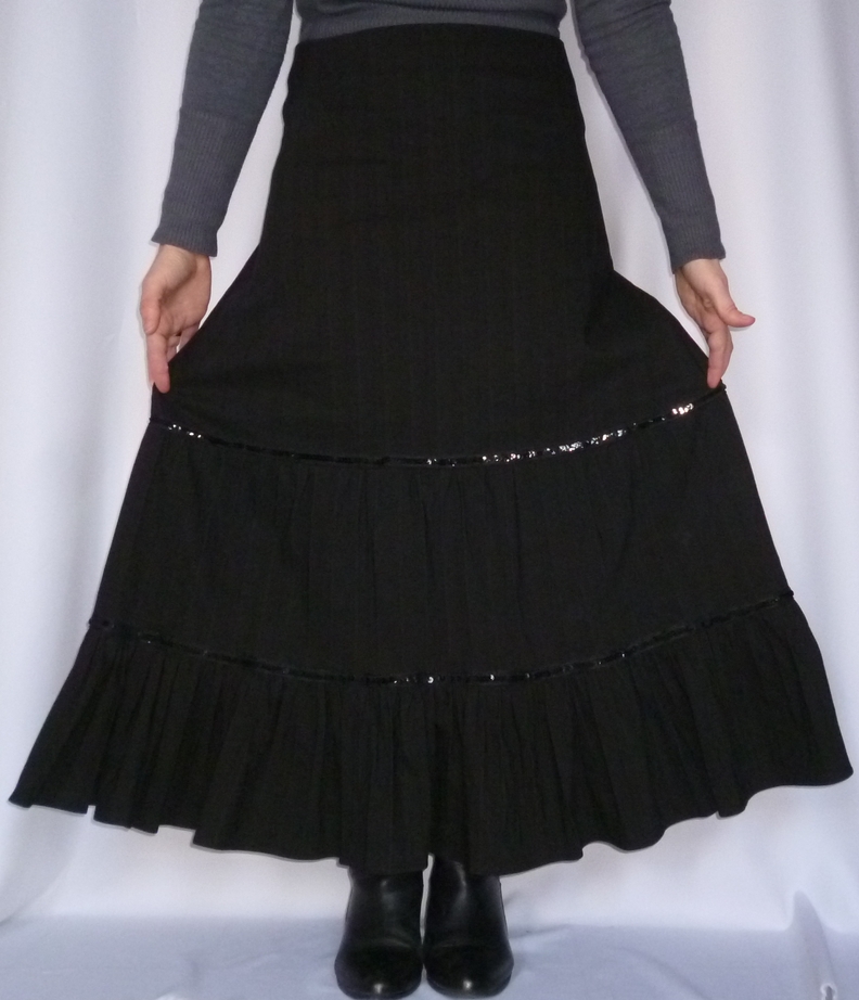 Pour donner un peu de fantaisie à cette jupe, j’ai ajouté deux rubans de sequins :