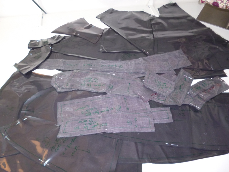 J’ai en revanche déchanté quand j’ai vu la planche à patrons qu’il a fallu tout d’abord scotché puis ensuite décalqué car toutes les pièces se superposent sur la planche ! Il a ensuite fallu découper les 27 pièces dans le tissu, la doublure (sans parler des pièces à thermocoller…) Bref, j’ai passé deux soirées avant de passer à l’étape couture !