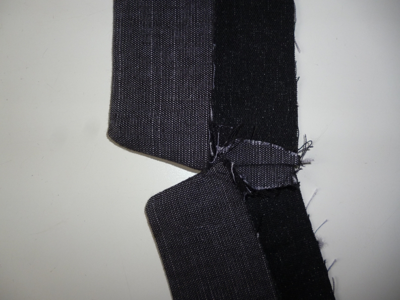 J’ai choisi la taille 36 et j’ai tout découpé dans un tissu noir relativement fin en pure laine acheté à moitié prix pendant les soldes au marché St Piere. Pour le tissu contrastant, j’ai pris de la toile fine façon jean pour rester dans un look plutôt décontracté.