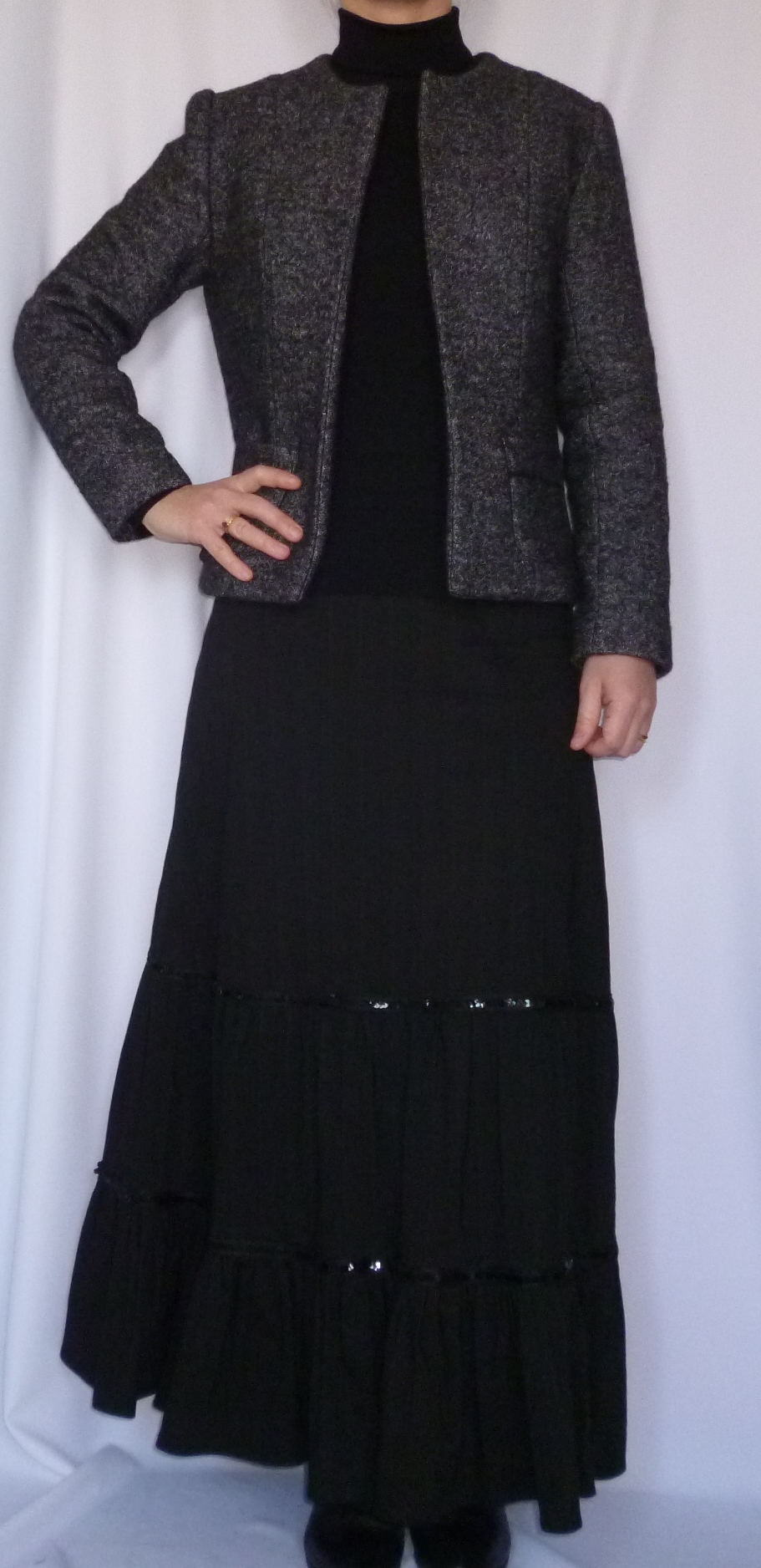 > Celle pour aller aux entraînements de danse ou aux compétitions : jupe longue ou pantalon + ma surjupe, t-shirt à manches longues et col montant ou tunique.