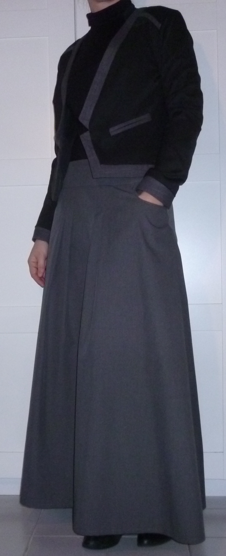Ci-dessous, je porte la jupe avec ma toute dernière couture : la veste Julia.