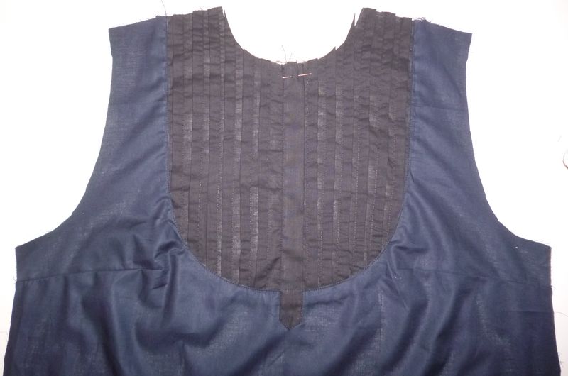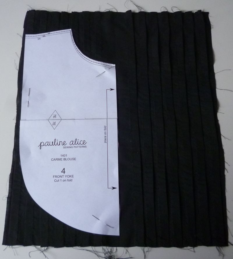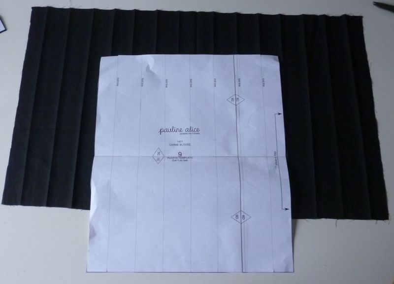 Ensuite il était indiqué de prendre le gabarit du plastron, de le positionner sur les plis formés et de couper le contour.