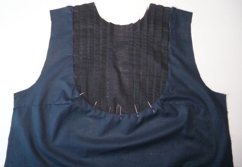 Pour l’assemblage des différentes pièces du patron, j’ai tenu à suivre les indications données par Pauline-Alice. Ca m’a permis d’apprendre de nouvelles techniques. Prenons l’exemple du plastron et de l’encolure par exemple :