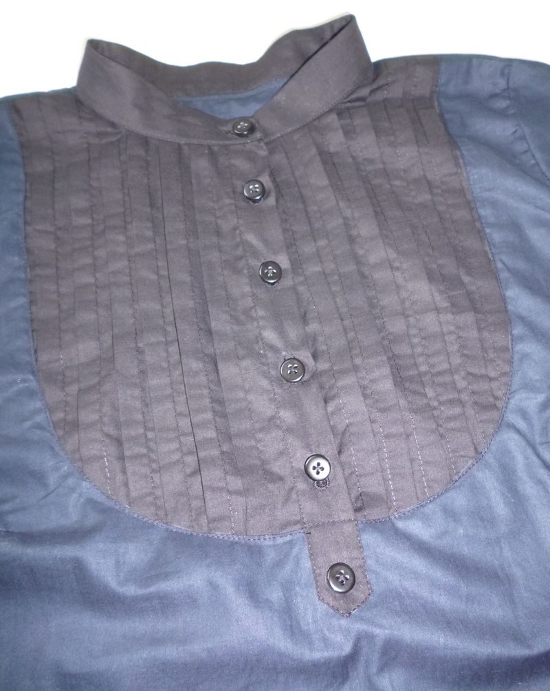 Dans les explications, seul le col est thermocollé. Je pense qu’on aurait aussi pu thermocollé les poignets et les pattes de boutonnage des manches…