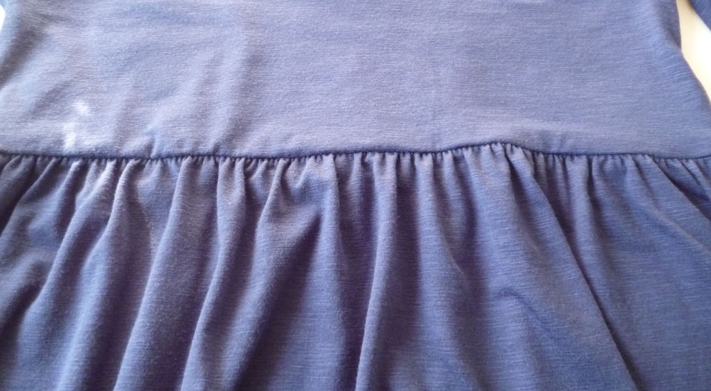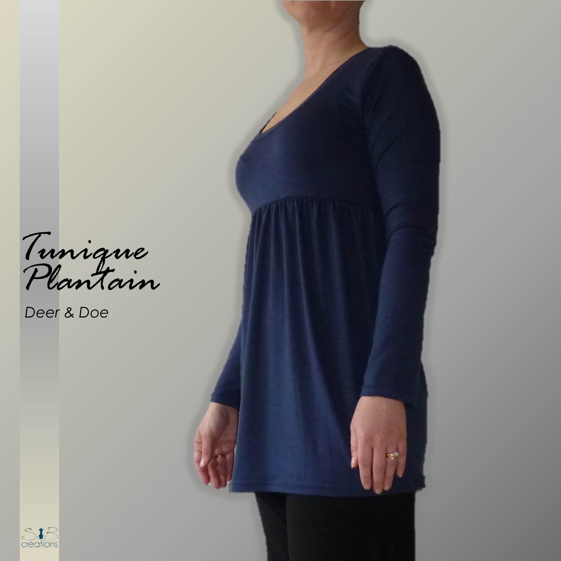 J’ai repris le patron Plantain de Deer & Doe (le T-shirt que j’avais réalisé ici était simple : des manches courtes, un appliqué et l’affaire était dans le sac) pour en faire une version tunique, froncée sous la poitrine selon le tuto de Paunnet indiqué ici.