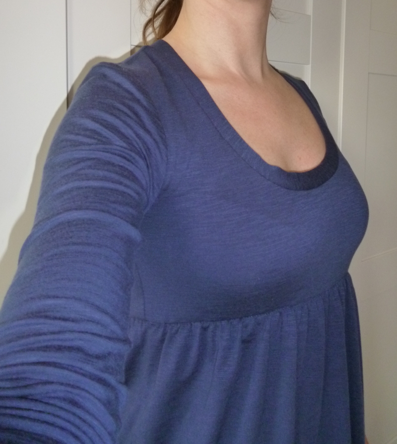 J’ai effectué les finitions d’ourlet des manches et du bas de la tunique à l’aiguille double. Je me suis d’ailleurs aperçue que ces finitions ne duraient pas dans le temps et que le fil cassait assez rapidement. Ce qui est étrange puisque ce point à l’aiguille double est censé être extensible. Avez-vous également constaté la même chose ?