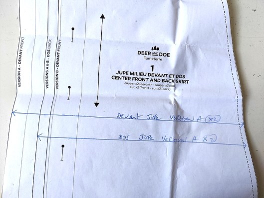 Petites précisions au passage : la jupe devant et la jupe dos (pièce 1) sont sur la même planche patron :
