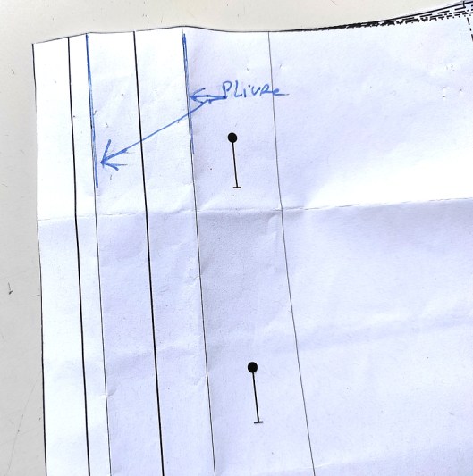 Pliage de la patte de boutonnage en cours selon les repères indiqués sur le patron… L’utilisation du fer à repasser est, vous vous en doutez, indispensable !