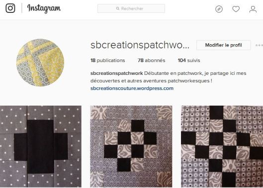 D’ailleurs, si vous voulez suivre mes aventures patchworkesques, j’ai créé un second compte sur Instagram : sbcreationspatchwork