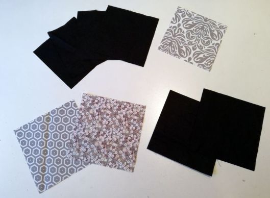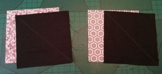 On obtient des carrés composés de deux tissus différents. On presse bien au fer !