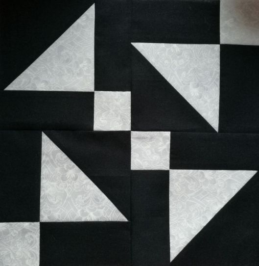 On assemble le tout et on obtient le bloc qui s’appelle le « shoo-fly » qui est un bloc traditionnel :