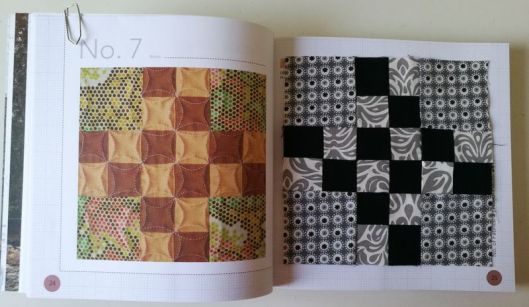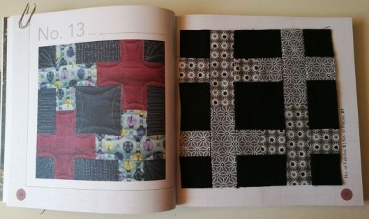 J’ai donc refait ce n°14 dans des tissus moins difficiles à couper. Je me suis en plus aperçue que les blocs n’étaient pas cousus dans le bon sens ! Il fallait donc que je recouse en vitesse ce maudit bloc !