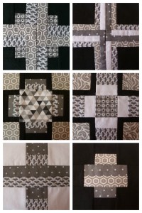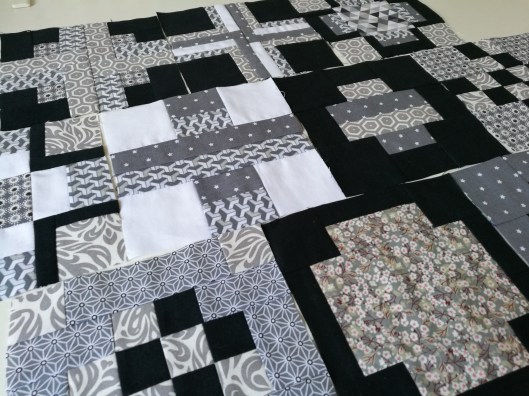 Les blocs 16 à 35 : les rectangles ! J’ai bien aimé coudre ces blocs, je les préfère nettement aux croix.
