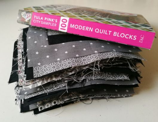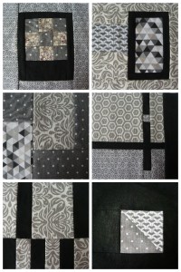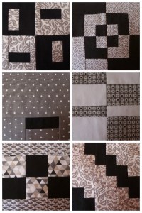Pour réaliser tous ces blocs, j’ai choisi des tissus que j’avais dans mon stock et puis j’en ai acheté d’autres chez Toto Tissus pour compléter. Certains ont souhaité utiliser les tissus que Tula Pink a elle-même dessinés. Moi, j’ai fait au plus simple et au plus économique… Et les couleurs choisies, pour ne pas changer sont celles-ci : noir, blanc et gris !