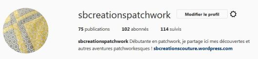 Pour me suivre chaque jour dans cette aventure, c’est sur mon compte Instragram que ça se passe : https://www.instagram.com/sbcreationspatchwork/