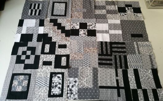A l’issue de ce défi, j’aurais mes 100 blocs cousus : ils me permettront d’en faire un joli sampler moderne ! Il parait que le plaid fini mesurera env. 2m X 2m !!!