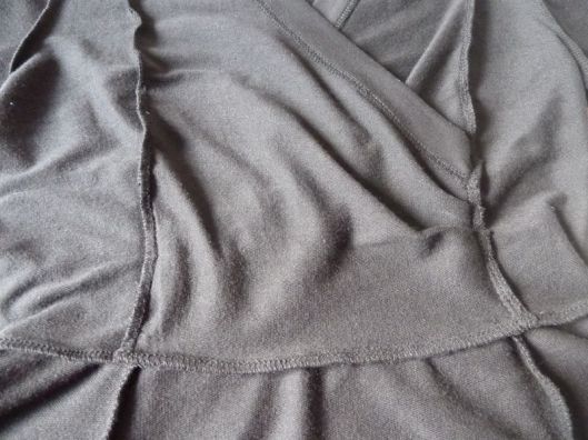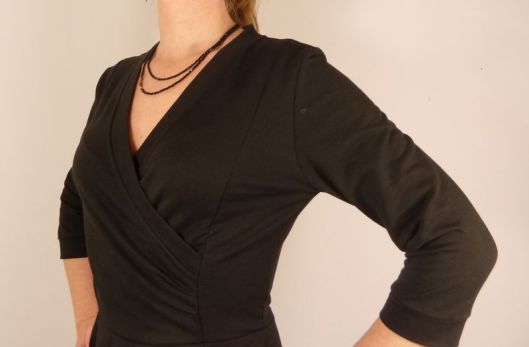 Côté patron, toutes les pièces s’emboîtent parfaitement, en tout cas celles que j’ai cousues. Il y a juste une erreur au niveau du placement des crans sur le panneau de la jupe n°9 : les crans sont inversés. Mis à part ces petites remarques, je trouve ce modèle très seyant, parfait pour moi ! Le décolleté est juste comme il faut !