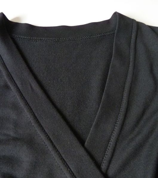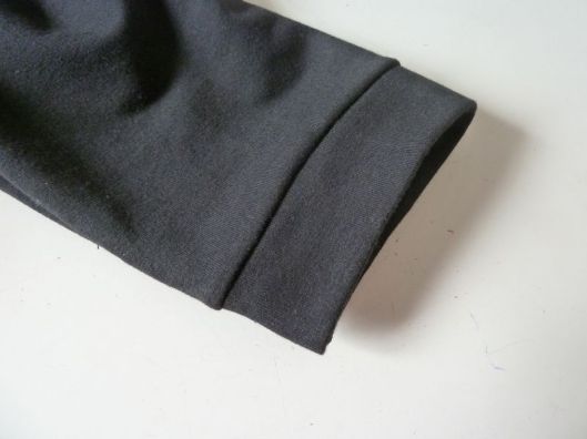 J’ai choisi de coudre les manches qui sont d’une longueur 3/4. Elles sont finies par un fin bracelet de manche :