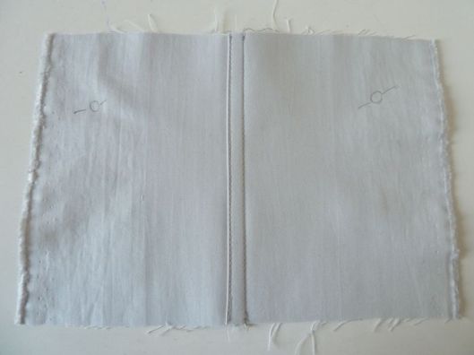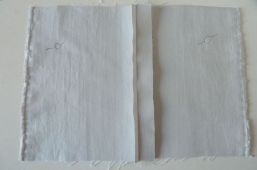 Je vous propose ici le principe de base sur une petite pièce d’étude. Voici deux morceaux de tissus qu’on vient assembler envers contre envers, la valeur de couture étant de 1,5 cm :
