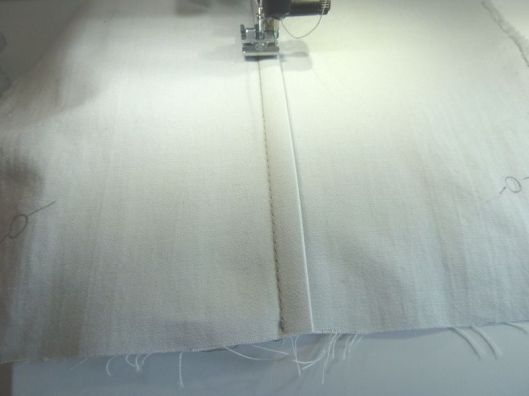 On couche au fer les marges de couture, la plus grande cachant la plus petite :
