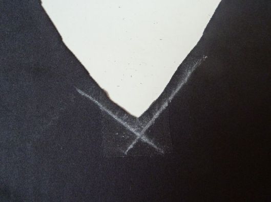 Comme précédemment, on vient marquer à la craie les valeurs de couture et ça forme donc une croix :
