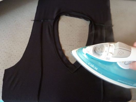 On presse donc au fer cette encolure en couchant les valeurs couture comme ci-dessous :
