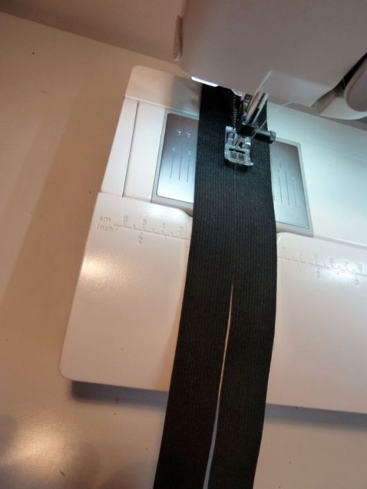Au moment de coudre cette veste, je n’avais pas d’élastiques à la bonne taille… J’ai donc cousu deux élastiques ensemble avec un point zig-zag et le tour était joué !