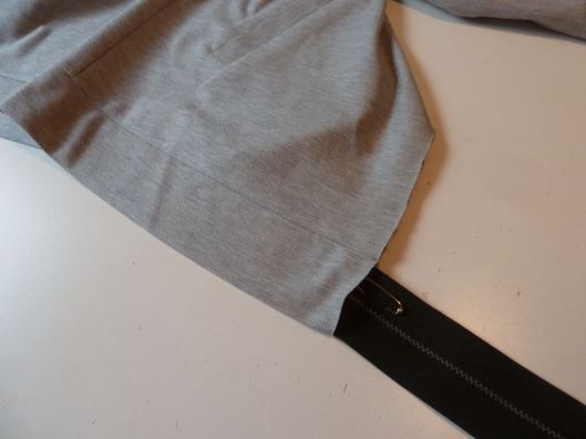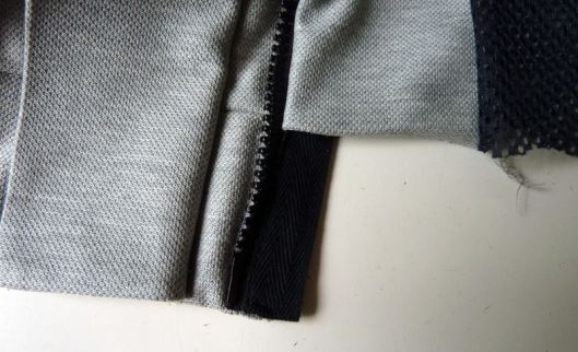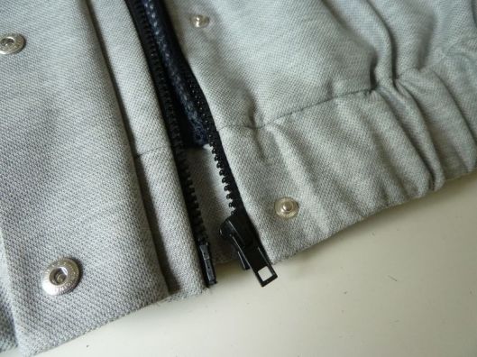 Voici le bas de la veste avec la gestion de cette patte et du zip :