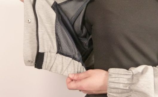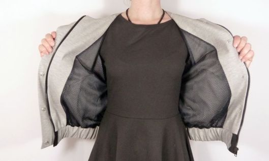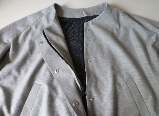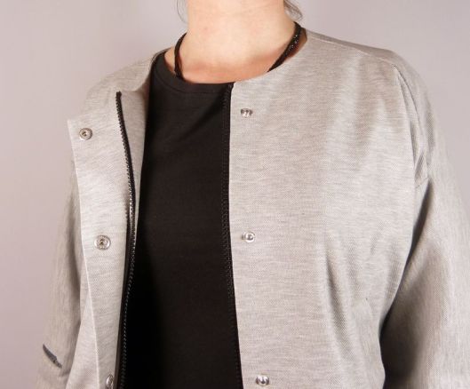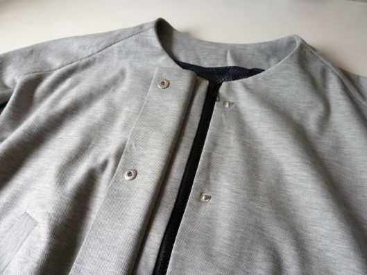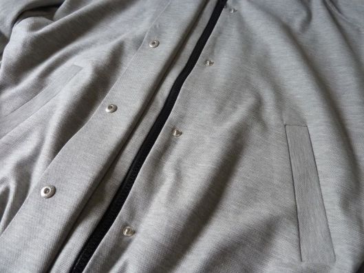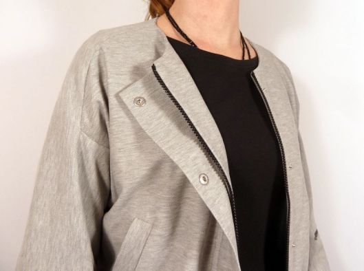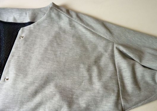 J’ai utilisé un tissu de type jersey, façon molleton mais très fin. Je ne sais pas comment ça s’appelle mais je l’ai trouvé parfait pour cette veste car il est très souple, fin et a une bonne tenue malgré tout.